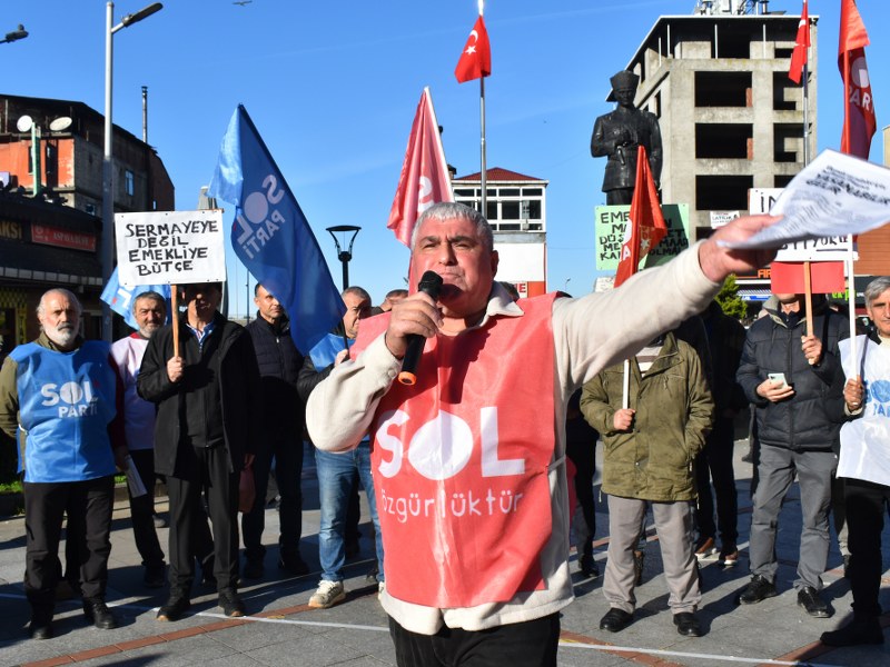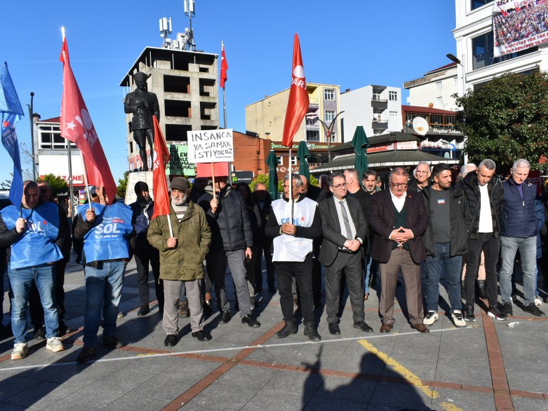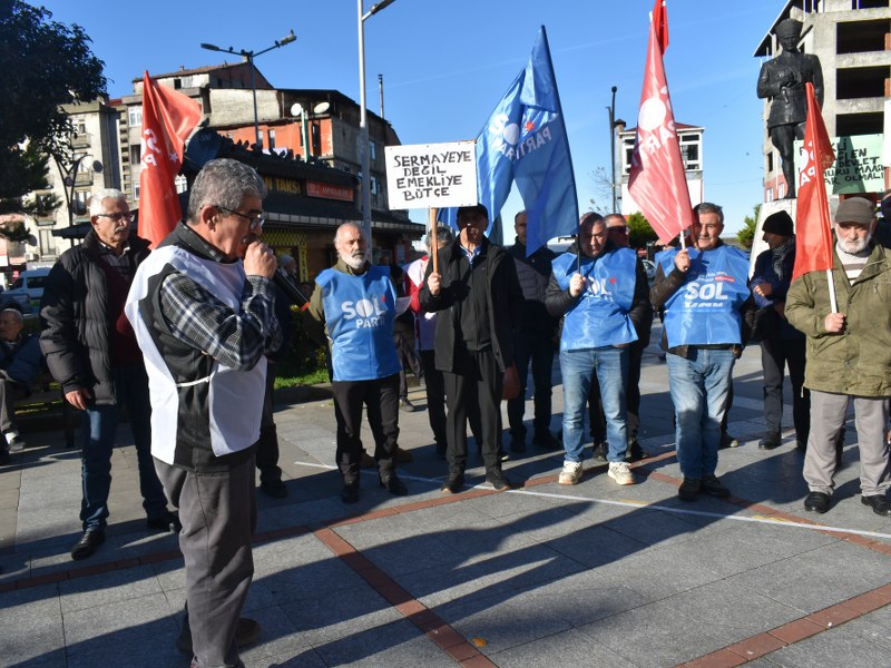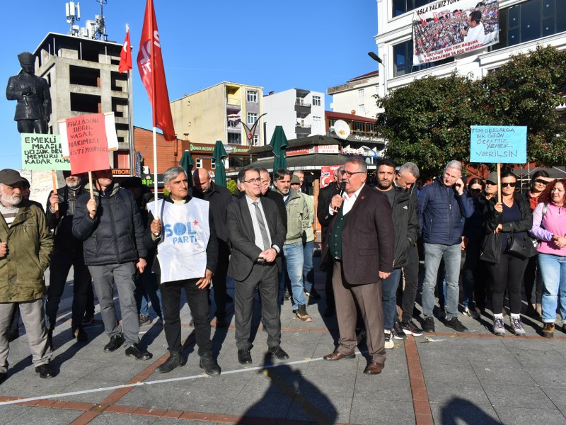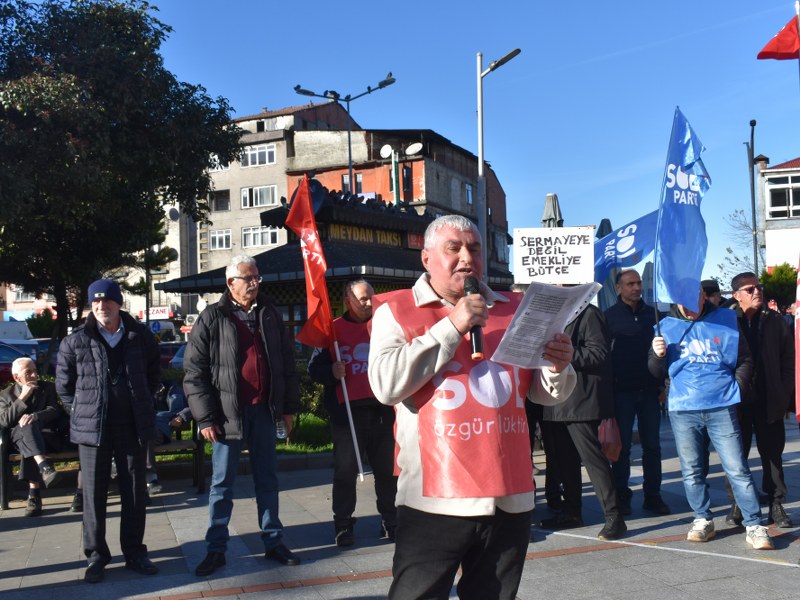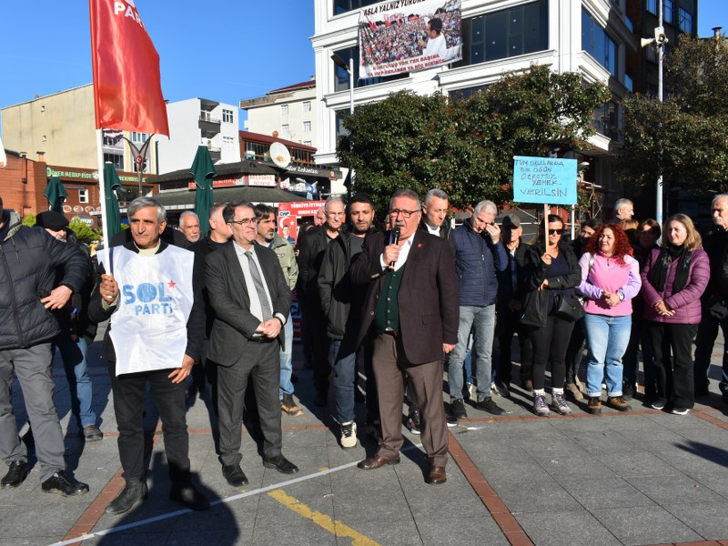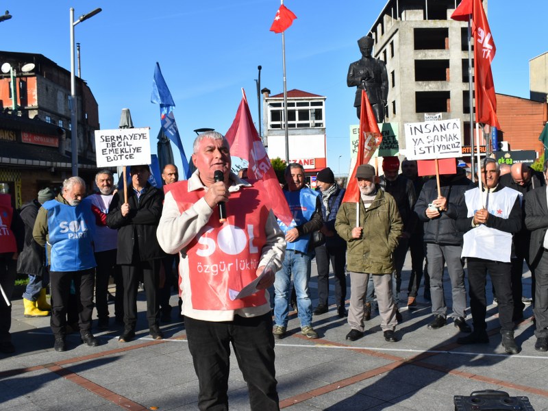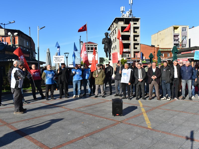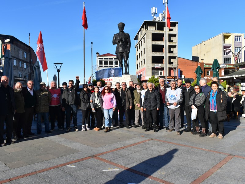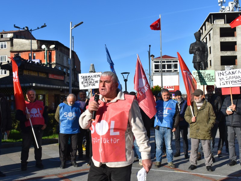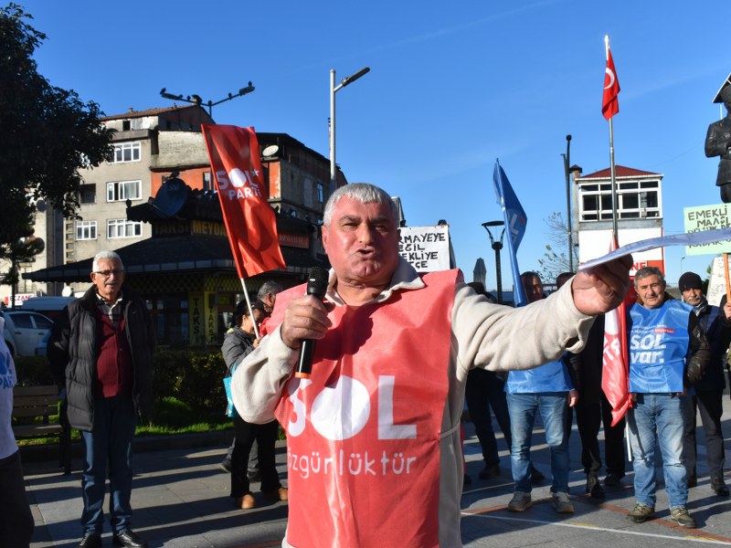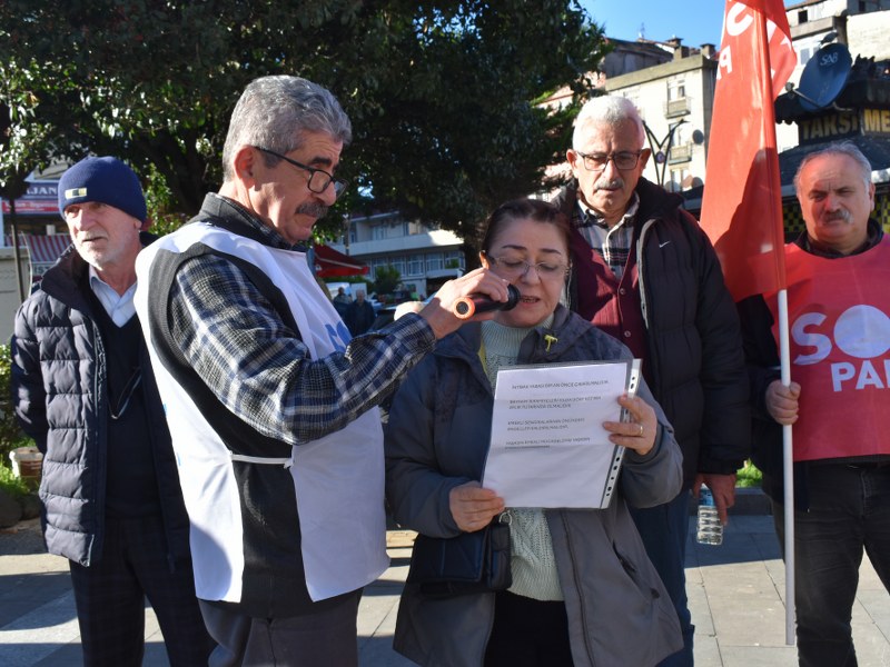 Pazar Sol Parti İlçe Başkanı Okan Telatar, İlçe Yönetim Kurulu Üyesi Okan Taş, Tüm Emeklilerin Sendikası adına Nevin Uygur birer konuşma yaptılar. Bildiri Okan Telatar tarafından okundu.