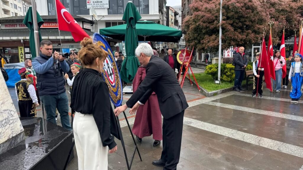 Atatürk büstüne İlçe Milli Eğitim Müdürü Adem Gündüz tarafından çelenk sunuldu.