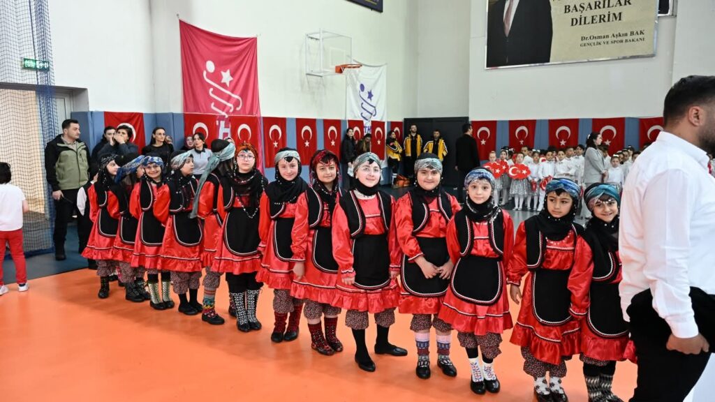 Meydan’daki kutlamaların ardından etkinlikler saat 10.30’da Pazar Mehmet Akif Pirim Kapalı Spor Salonun ‘da devam etti.