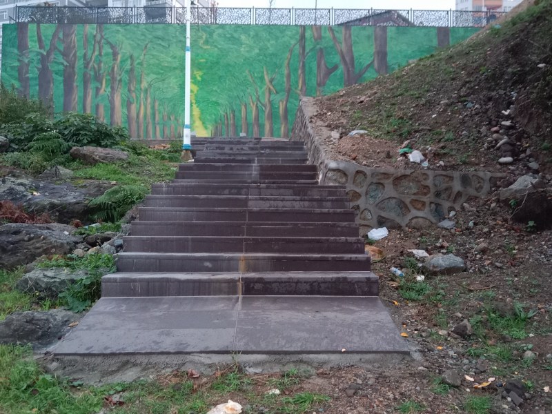 Kafeterya kısmı, deniz kıyısına merdivenlerle bağlandı. Tünel duvarına çok büyük bir tablo çizildi.