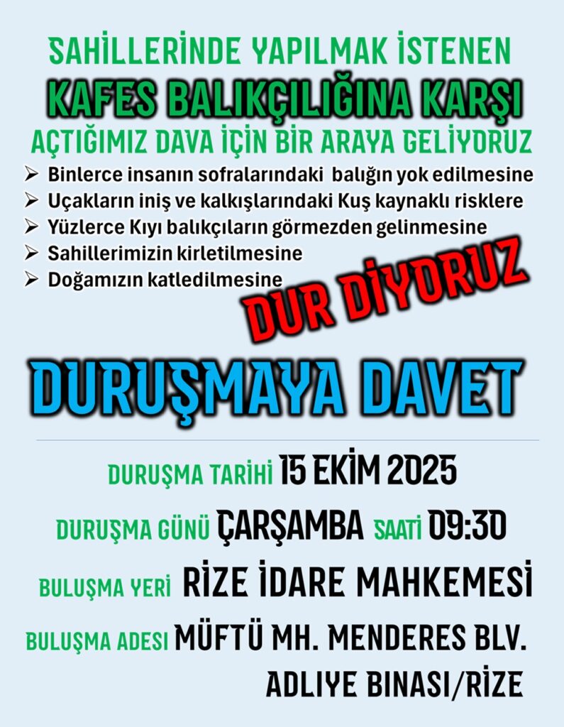 PAZAR’DA KAFES BALIKÇILIĞINA HAYIR DİYENLER . RİZE ADLİYESİ ÖNÜN’DE BULUŞUYOR.