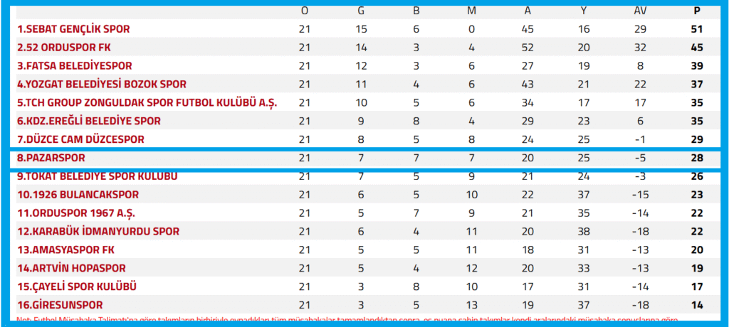 Pazarspor bu beraberlik ile puanını 28’a çıkardı. Puan cetvelinde 8. sırasını korudu.