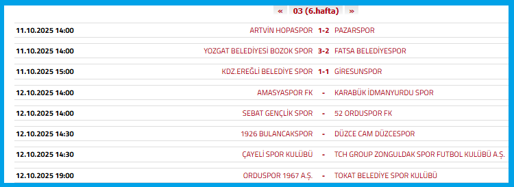 Bu skor ile puanını 6’ya yükselten Pazarspor, maç fazlalığı ile birlikte, tehlikeli bölgeden uzaklaşarak 9. sıraya yükseldi. Hopaspor ile 3 puan ile 15.sırada yer aldı. Puan cetvelinde ‘ki gerçek sıralama yarın oynanacak (12.10.25) maçlar sonucu belli olacak.