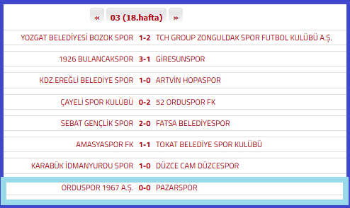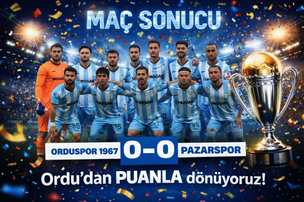 2025-2026 Futbol Sezonun ‘da, 3.Lig,3.Grub’ ta mücadele veren Rize-Pazarspor, 18.hafta’da gittiği Orduspor 1967 S.K deplasmanın ‘da 0 – 0 berabere kalıp, puanını 23’e yükseltti ve puan cetvelinde bulunduğu 8.sırayı korudu.
