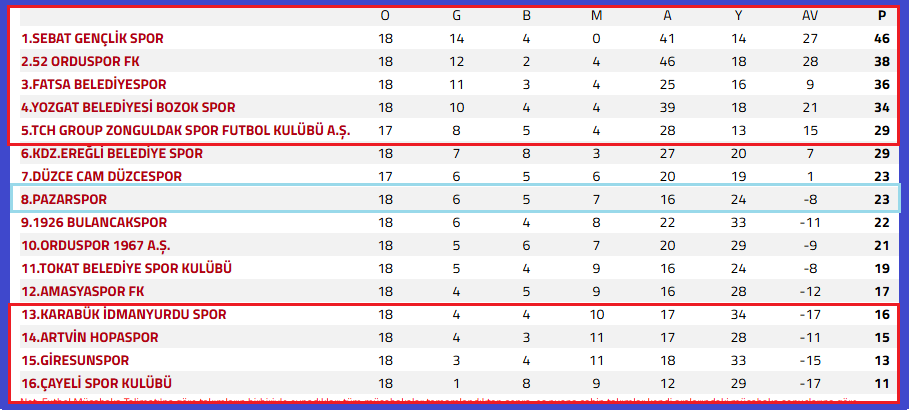 İŞTE 18.HAFTA SONU PUAN TABLOSU ve GELECEK HAFTA YAPACAĞIMIZ 2 MAÇ.