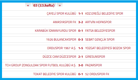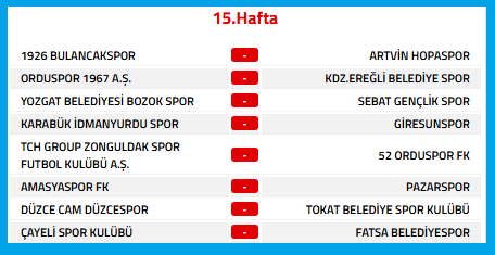 İlk devrenin bitimine 2 hafta kala, Pazarspor, 14.hafta’da kendi sahasında Karabük ile oynarken, son hafta Amasyaspor ile deplasman’ da oynayacak.