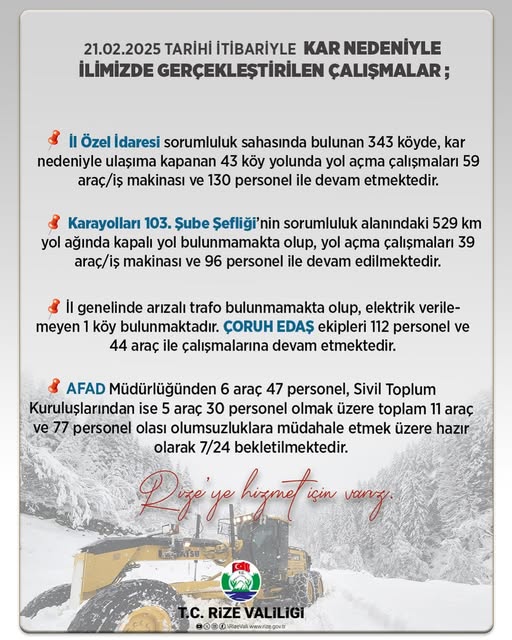 Ayrıca Valilik kar ile yapılan mücadeleler hakkında da bir Basın açıklaması yayımladı.