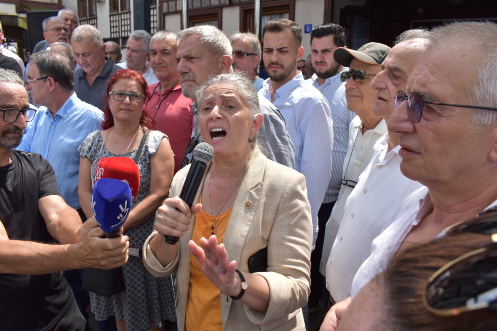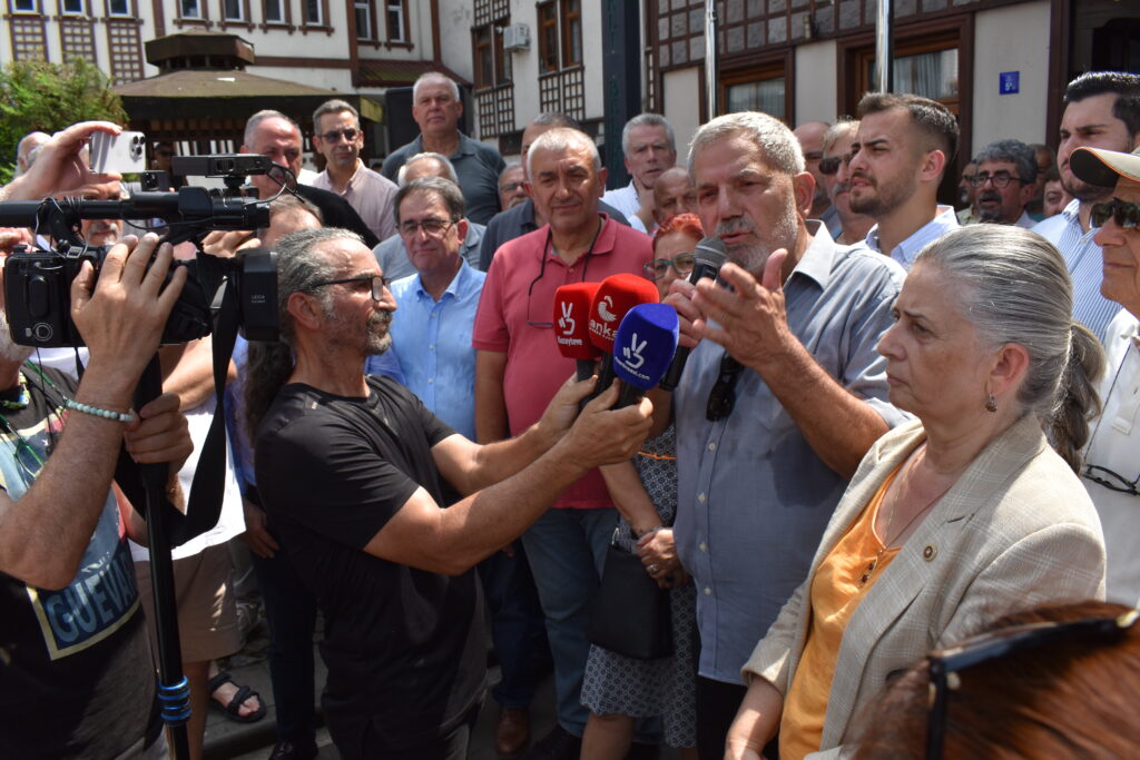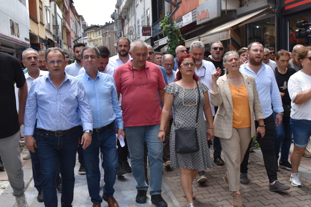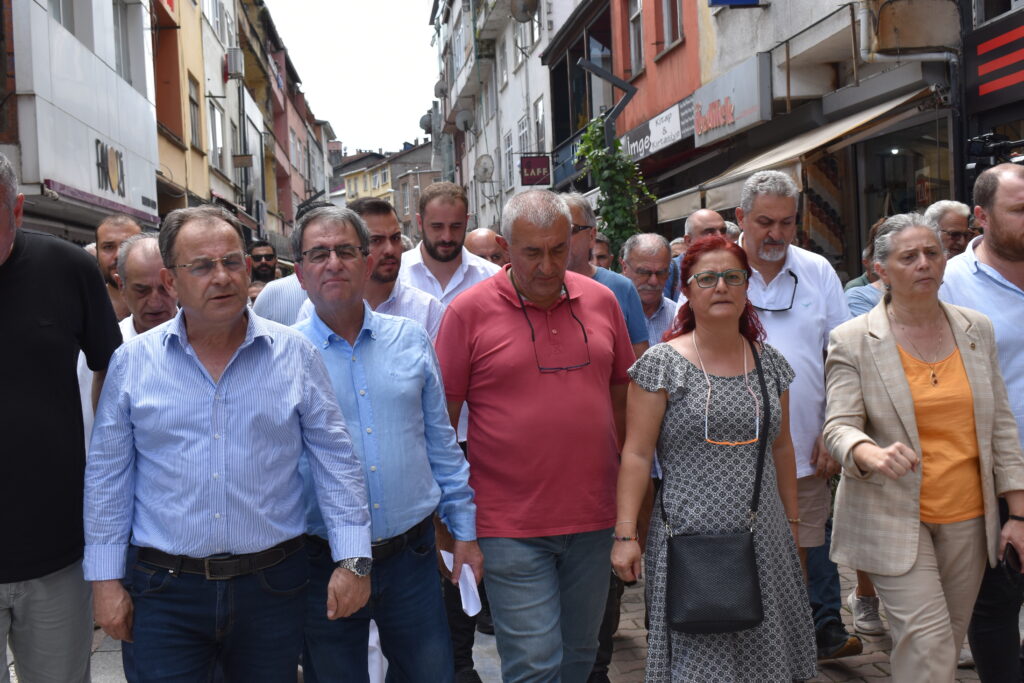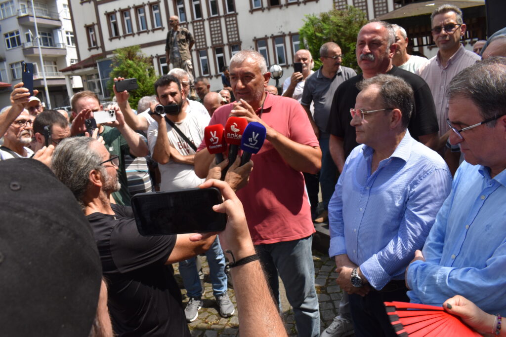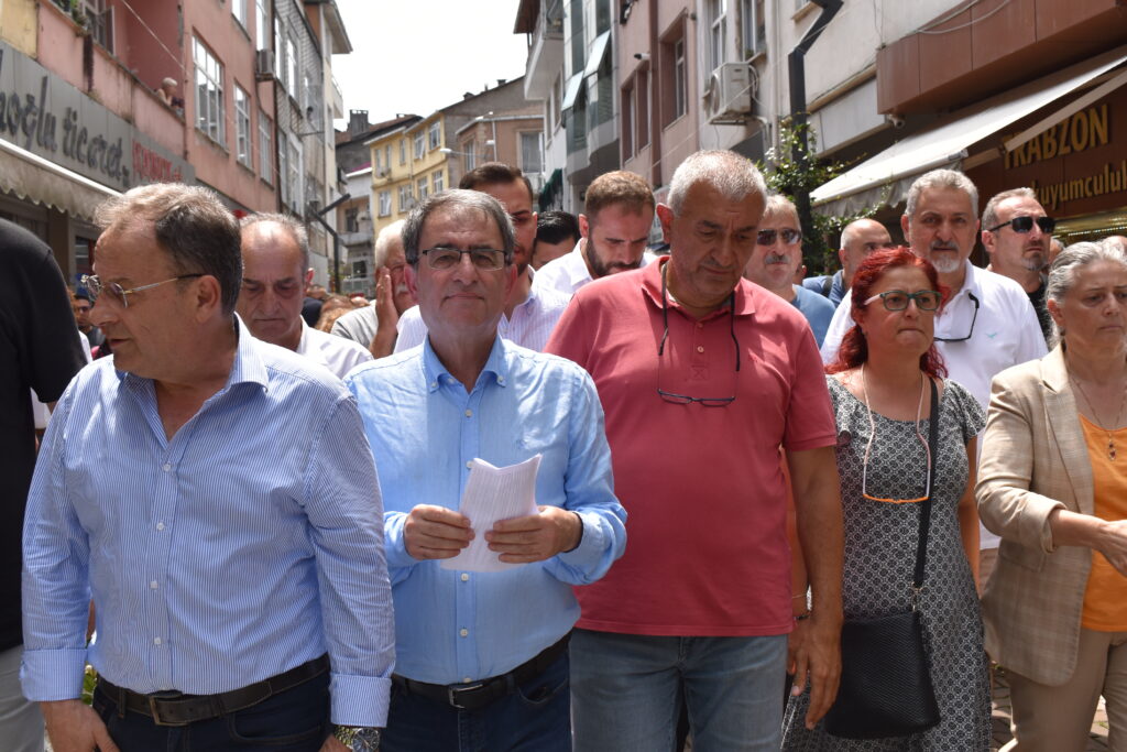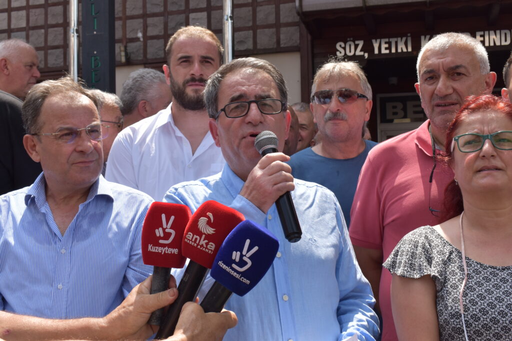 Topluluk Belediye Hizmet Binasına geldikten sonra; Rize CHP İl Başkanı Saltuk DENİZ basın açıklamasını okudu. Başkana yapılan çirkin olayı kınayan yürüyüşe, Trabzon CHP Milletvekili Sibel Suiçmez, Rize CHP Milletvekili Tahsin Ocaklı , Trabzon, Rize, Artvin CHP İl Başkanları, Ardeşen Belediye Başkanı, CHP İlçe Başkanları, Sol, Emek, Zafer Partisi Başkanları, Sendika temsilcileri, Türk Halk Evleri Genel Başkanı ve Halk katıldı. Milletvekilleri, Fındıklı Belediye Başkanları, Parti Başkanları, Sendika temsilcileri, THE Genel Başkanı birer konuşma yaptılar.