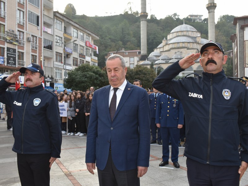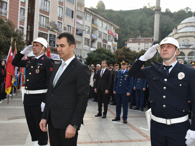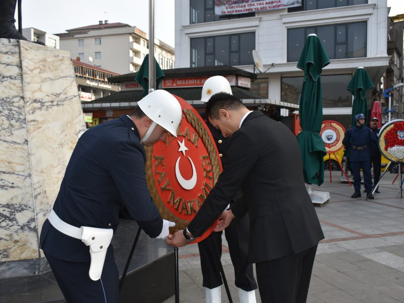 İlçe Kaymakamı Hamza İNAM, Garnizon Komutanı Hava İstihkâm Yüzbaşı Murat DEMİRBAŞ, Belediye Başkanı Neşet ÇAKIR’ın Atatürk anıtına çelenk sunmasının ardından Gazi Mustafa Kemal Atatürk’ün ebediyete intikal ettiği saat 09.05’te sirenlerin çalmasıyla 2 (iki) dakikalık saygı duruşunda bulunuldu ve ardından İstiklal Marşı okundu.