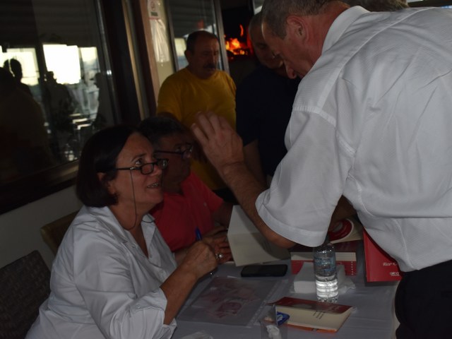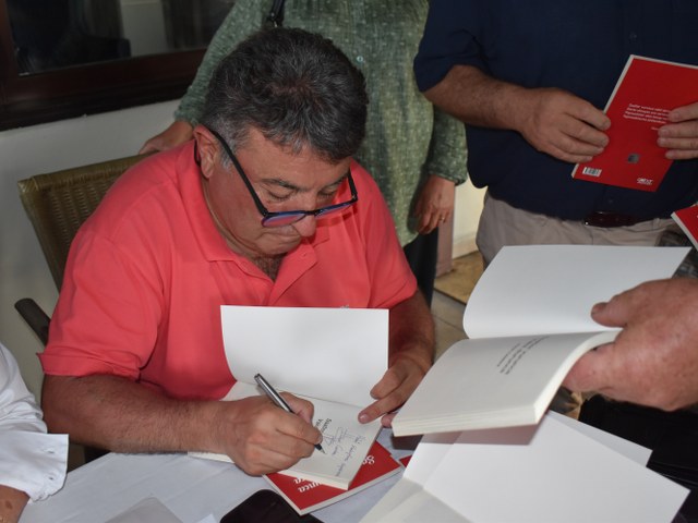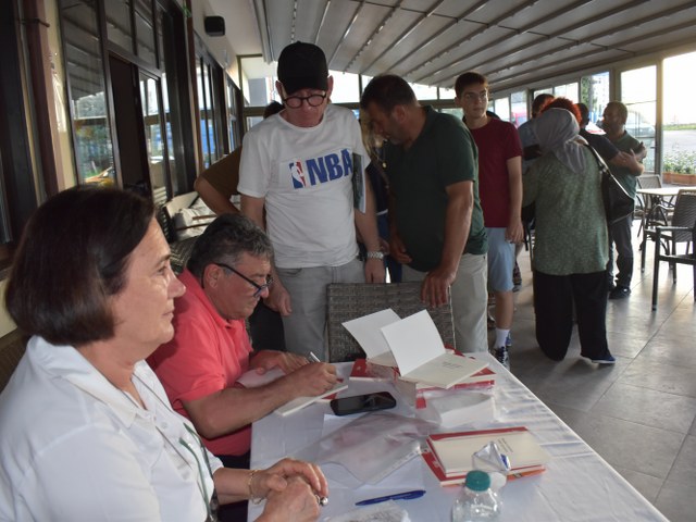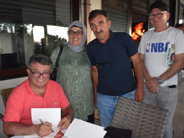Şiir dinleti sonrası, Hızır Cambaz, yeni çıkan kitabını alanların kitaplarına, günün hatırası olarak birkaç cümle yazdı ve imzaladı.