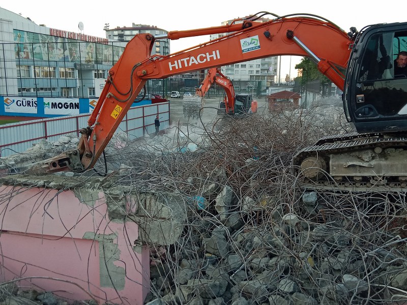 Rize-Pazar Stadının Eski Tribünü yıkıldı.