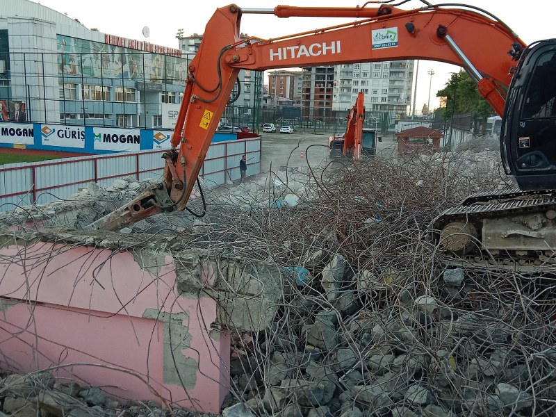 Rize İl Gençlik ve Spor Müdürlüğünden yapılan açıklama ‘da ” Yapılan etüt çalışmaları sonrasın ‘da, eski tribün’in miladini doldurduğunu , türbine deprem dayanıklılık testi yapıldığı, test sonucunda türbinin yıkılması gerektiğine karar verildiği, yıkılan tribün yerine yeni konsepte , daha işlevsel ve konforlu bir türbin yapılacağı ” söylendi.
