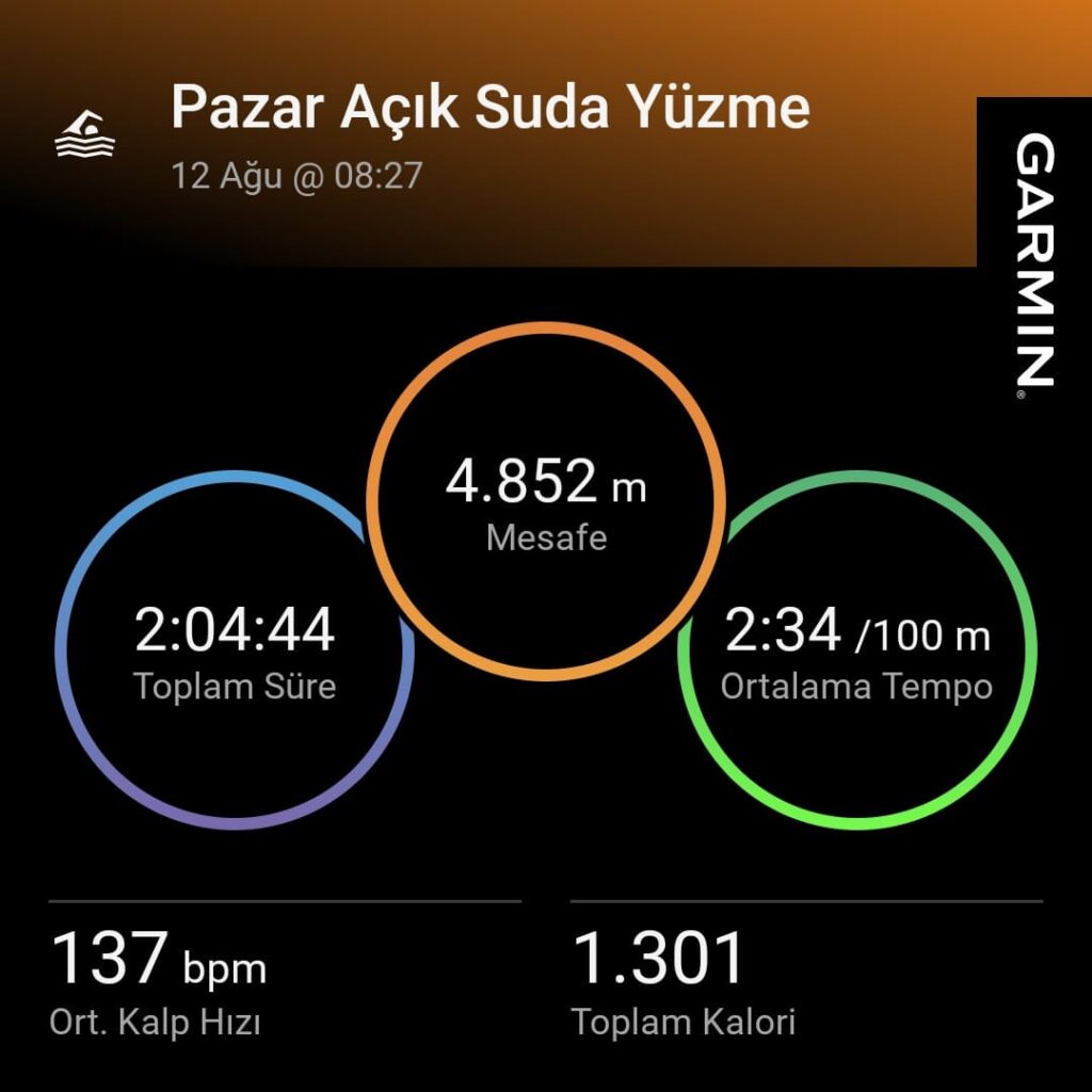 Yarışmacılara yüzme süreleri boyunca 2 adet güvenlik için, bot refakat etti. Etkinliğe katılanlar 4852 metreyi, 1 saat 58 dakika ‘da yüzerek Pazar Belediyesi Sosyal tesislerine ulaştılar. Toplam süre 2.04.44 sn olarak açıklandı. Yarışmaya başlayan 12 kişiden 6 kişi yarışmayı tamamladı…