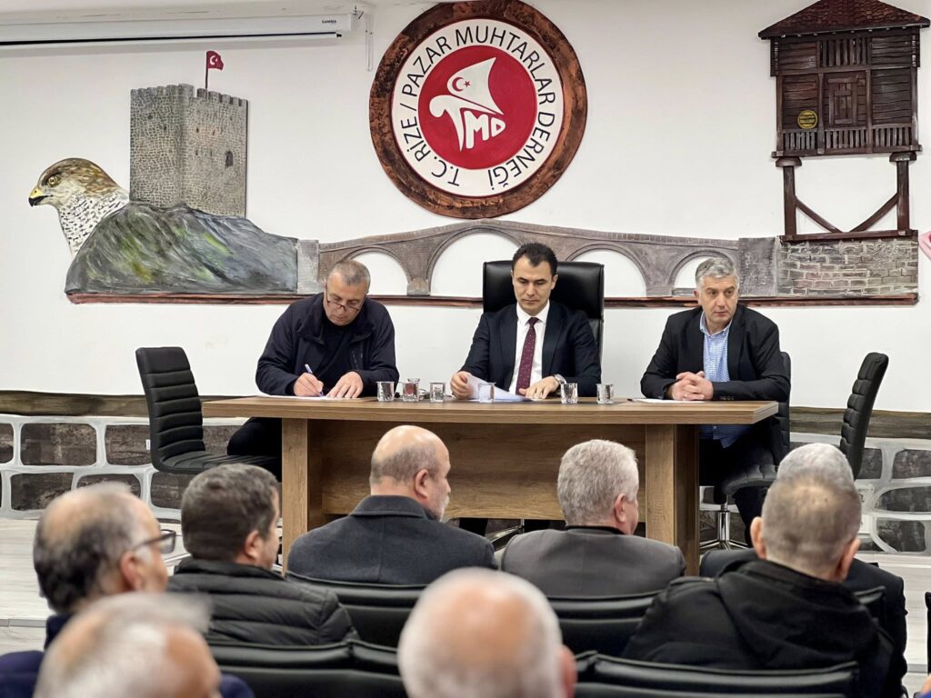 Rize-Pazar’da İlçe Kaymakamı Hamza İnam başkanlığında, Muhtarlar Derneği toplantı salonunda Köylere Hizmet Götürme Birliği Encümen Seçimi gerçekleştirildi.