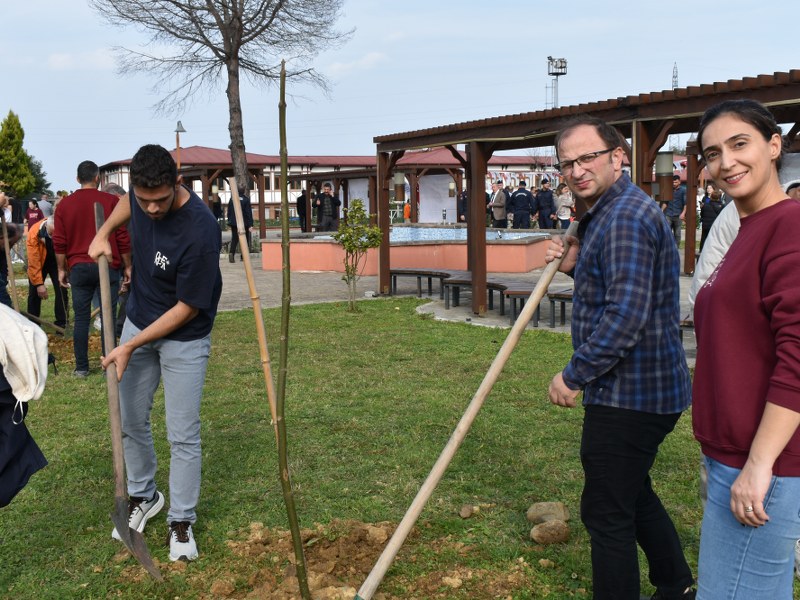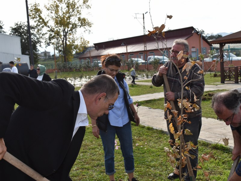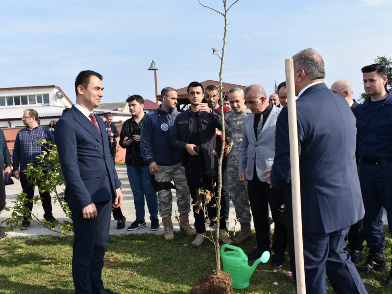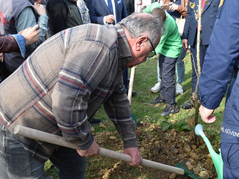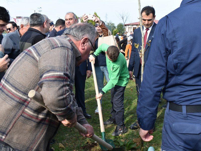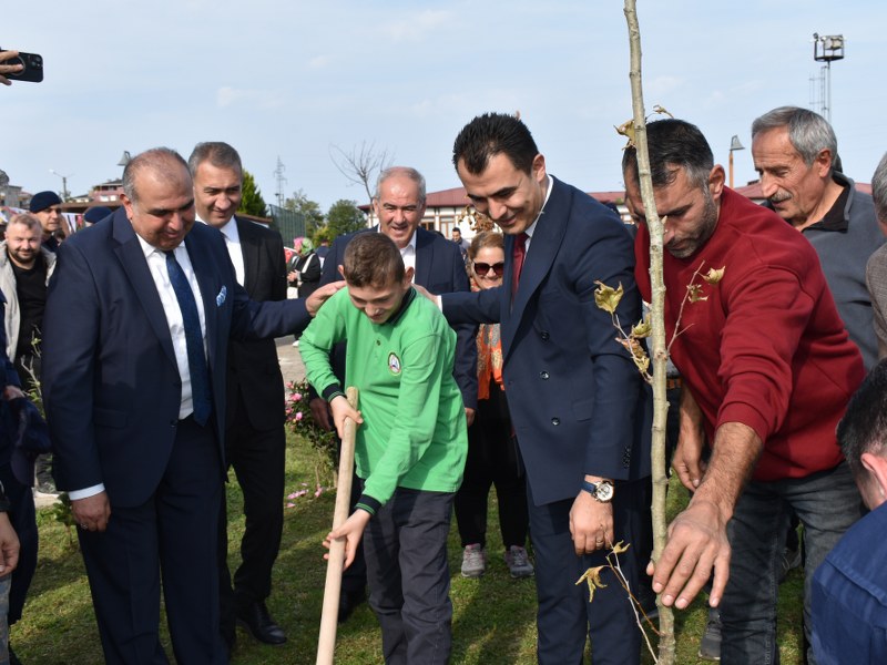 Protokol ve törene katılanlar 250 adet fidan diktiler.