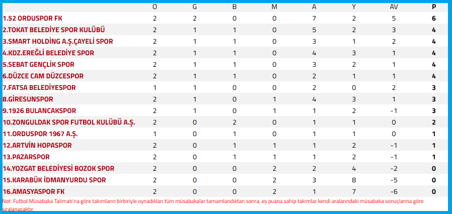 Puan cetvelinde 1 puana sahip ve 13. sırada olan Pazarspor, Puan cetvelinde yine 1 puana sahip ve averaj ile 11. sırada olan Ordu 1967 A.Ş karşılaşacak.
